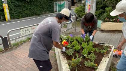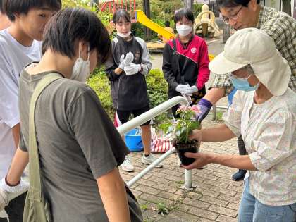 今日は、午後に西原公園で「花植えボランティア」がありました。3年生を中心に10名のやる気にあふれる生徒が参加しました。