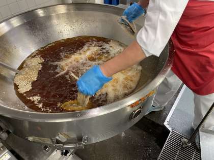 うなぎの蒲焼きのように、開いたいわしの腹側が上になるように盛りつけてもらっています。