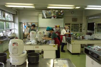 今日は6月の夜の勉強教室が行われます。早くから「笑顔咲く街キッチン」の皆さまが夕食の準備をしてくださいました。卒業生も手伝いに来ています。
