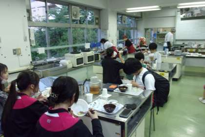 大好評の焼き鳥丼。参加した生徒も大満足でした。咲くやこの街キッチンの皆さま、卒業生の皆さんありがとうございました。