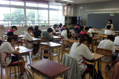 2年生の朝学習では数学の小テストを実施いたしました。