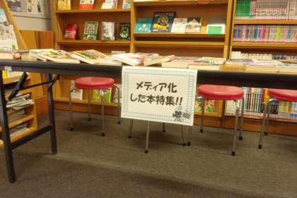メディアセンター内にテレビなどで放映された作品の原作のコーナーを設置しました。是非手に取ってみてください。