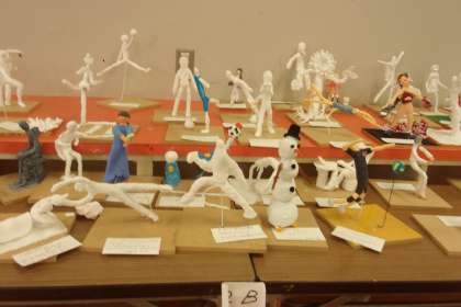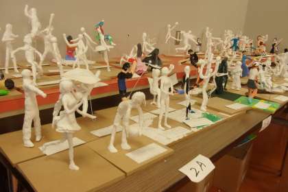 2年生が1年の3学期に制作した作品です。さまざまなポーズが紙粘土で表されています。