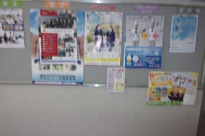 北校舎3階の廊下の進路コーナーです。高校のポスターやパンフレットを掲示しております。是非参考にしてください。