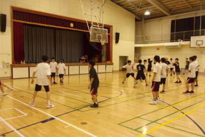 バスケットボール部(男子)の練習風景です。2対2のオフェンス、ディフェンスの練習です。