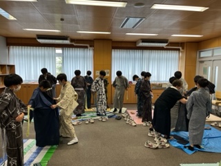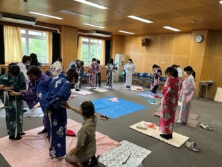 地域の方々にお越しいただき、ゆかたの着方や帯の結び方をていねいに教えていただきました。