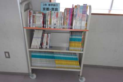 修学旅行の事前学習やコース決めに使うガイドブックや資料を閲覧できるコーナーを北校舎の3階に設置しました。ワクワクしますね。