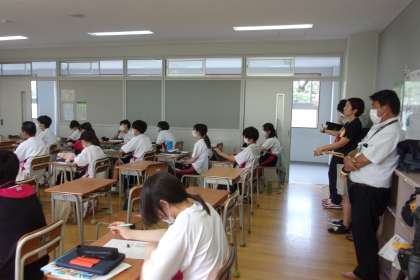 2年生の保健体育です。こちらも世田谷区教育委員会より講師の先生にご来校いただきご指導をいただきました。今日は保健分野で「傷害の防止」についての授業でした。