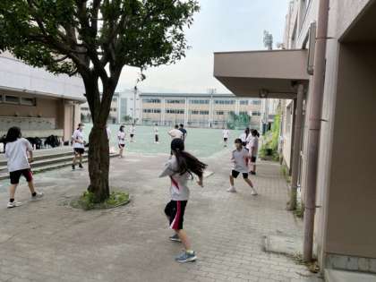 今日は外練習です。基本となるフォームの確認とフットワークの練習をしました。