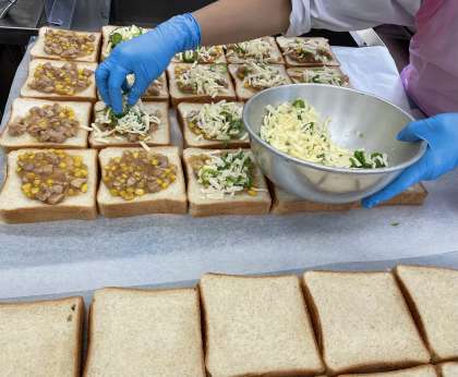 照り焼きチキントースト作成中です。