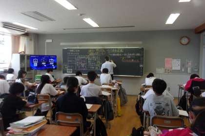 2年生の理科の授業です。今日は消化についての学習で唾液のはたらきのまとめを行いました。