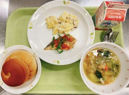 ピーマン・じゃがいも(茨城)、玉ねぎ・トマト(愛知)、にんにく(青森)、きゃべつ(群馬)、にんじん・青梗菜(埼玉)、銀さわら(ニュージーランド)、鶏肉(岩手)