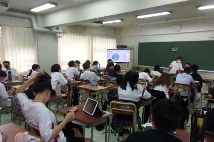 1年生の学活では今学期の振り返り、来学期に向けての目標設定について話し合いました。