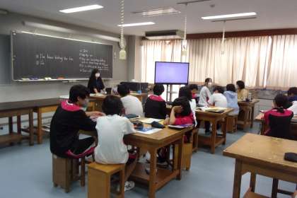 3年生の英語の授業です。こちらは技術室で授業を行いました。