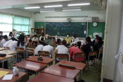 このクラスは今学期で転出する生徒がいます。学活の時間はお楽しみ会を行いました。内容は大人気の人狼ゲームです。