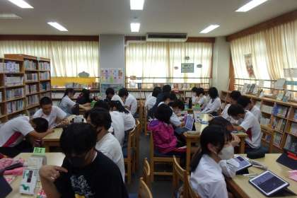 メディアセンターでは3年生が修学旅行に向けた調べ学習ですを行いました。