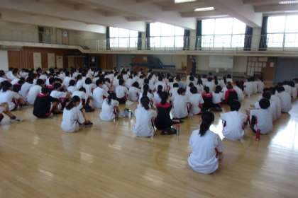 三年生の学年集会の様子です。今学期の振り返りを行いました。