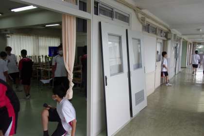本日の午後は全校一斉に大掃除を行いました。教室の扉を外し床や壁を磨き汚れを落とします。