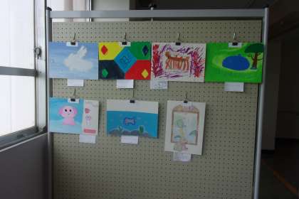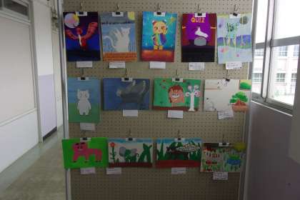 F組の作品は東校舎3階のすまいるルーム前に展示してあります。