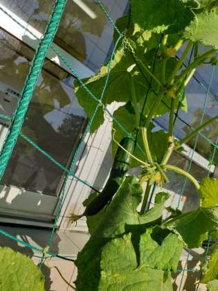 桜丘中学校のきゅうりは暑さに負けずすくすく実ってます。