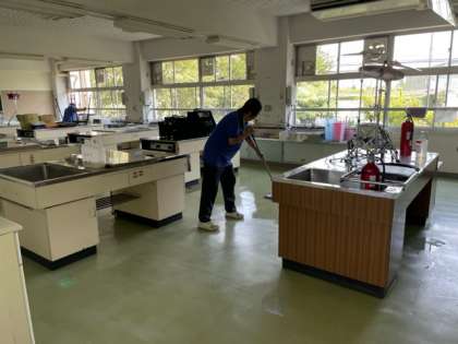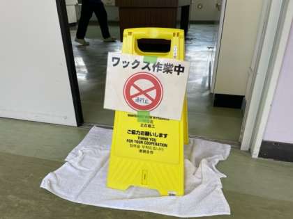 学校用務の方がワックスをかけてくれています。今日は調理室です。ありがとうございます。