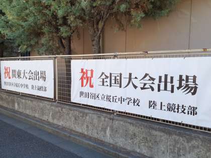 陸上部の横断幕を張りました。学校に来校される際には、是非ご覧ください!