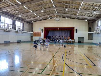 午後の体育館では、吹奏楽部がコンクールに向けて練習をしています。
