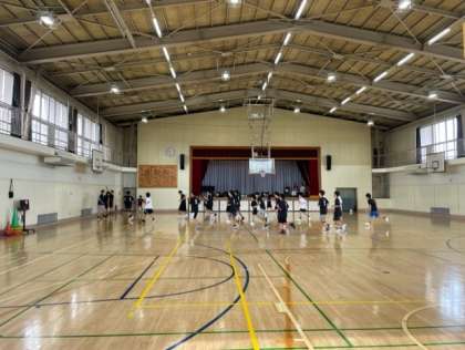 昨日行われたバスケットボールW杯の日本対フィンランド戦を見て感動した人も多いのではないかと思います。こちらは男子バスケットボール部の様子です。朝から一丸となって練習に取り組みました。なお、本日より小学生の体験入部が始まります。バスケットボール部にも多くの小学生が練習に参加してくれました。