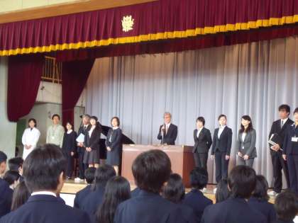 平成24年度 着任式を執り行いました。新規採用の先生も含め、計12名の教職員が着任いたしました。どうぞよろしくお願いいたします。