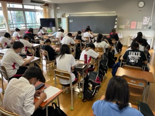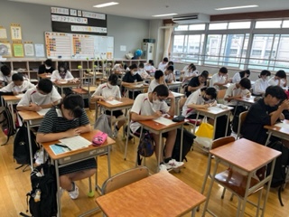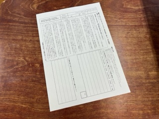 2年生の朝学習の時間では新聞記事の要約と自分の意見を考えました。