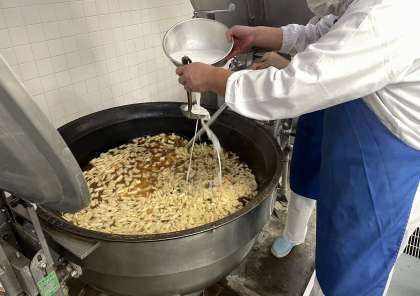 給食でも片栗粉をしっかり溶いてダマにならないようゆっくりと加えました。