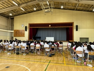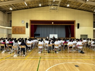 1年生は体育館でいじめ防止プログラムの講演を聞きました。