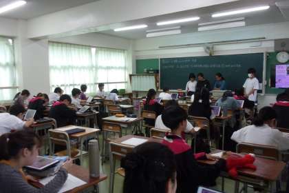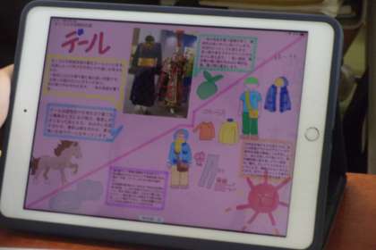 1年生の社会の授業では世界の気候の特色とそこでの人々の暮らしについて、班で調べた内容を発表しました。なかなかよく調べておりました。発表の資料はタブレットでも確認することができました。