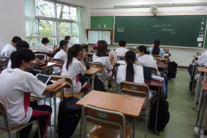 1年生の朝学習の様子です。きゅびなを利用して各自の課題に取り組んでいました。
