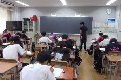 2年生は職業体験学習で各事業所に送る自己紹介カードの下書きを行いました。