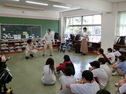 今日は「障害のあるアーティストが自らの人生を伝える演劇プロジェクト」をテーマに世田谷パブリックシアターの方にご来校いただき、上記のテーマで演じていただきました。各クラスごとに教室内で演じていただいたので、演者と生徒との距離が近くより言葉の裏の心情が波のように押し寄せてくるのを感じました。今日は1年C組とE組でそれぞれ2時間ずつ行いました。29日(金)と10月2日(月)にも公演をしていただく予定です。
