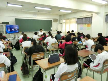 投票の様子です。投票はタブレットを使用した電子投票を行いました。また、一部紙ベースの投票を併用しました。