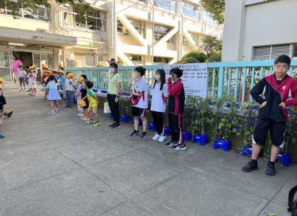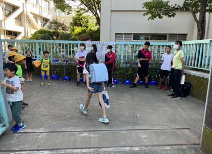 今週はあいさつ運動期間です。今日は笹原小学校で行いました。小学1年生のパワフルさを感じながら、生活委員の代表があいさつ運動に参加しました。