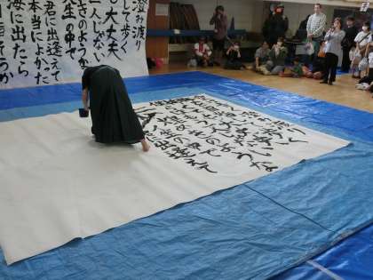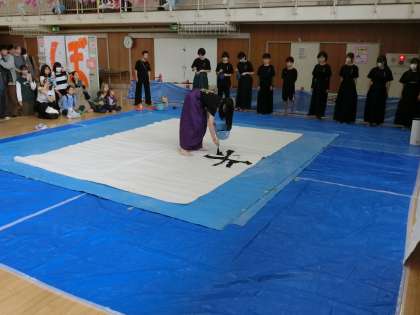毎年大好評の書道部のライブライティング。さて今年はどんな文字が描かれるでしょうか?