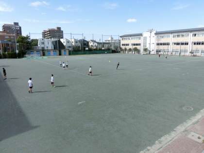 秋晴れの下、昼休みには生徒たちが次々と校庭に出てきました。ただ2年生が職場体験で郊外に出ているためいつもより少なめでした。