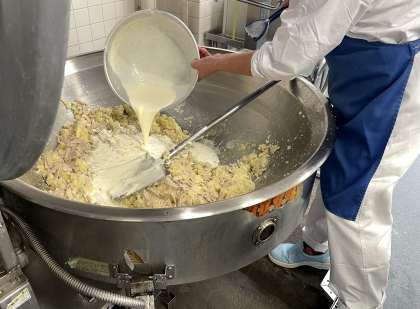牛乳、サラダ油、酢を乳化させてマヨネーズの代用にしました。