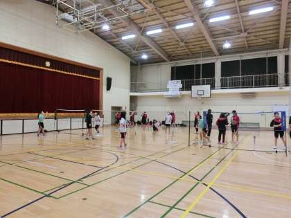 体育館ではバドミントン部が練習を行いました。大勢の部員を抱えるバドミントン部、活気が伝わってきますね。