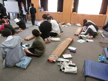 3年生の音楽の授業では筝の演奏に取り組みました。曲は「さくらさくら」です。
