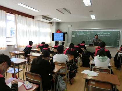 2年生の保健の授業です。今日はがんの予防について学習しました。