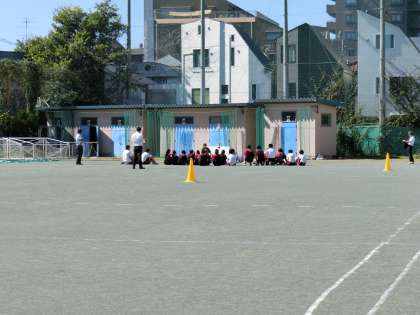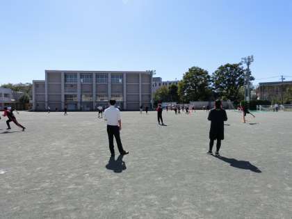 本日は世田谷区教育委員会より講師の先生にお越しいただき、保健体育の研究授業を行いました。種目はアルティメットです。風もなく絶好のコンディションで行うことができました。
