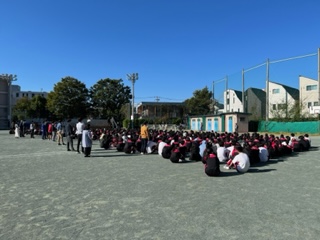 本日は朝学習の時間で避難訓練を行いました。