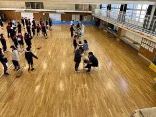 本日3年生は格技室で英語のスピーキングテストを行います。