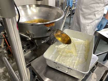リクエスト給食のデザート『ゼリーフルーツポンチ』を作っているところです。