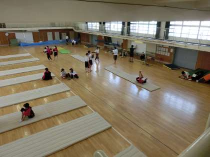 1年生の保健体育の授業です。今日は格技室でマット運動を行いました。