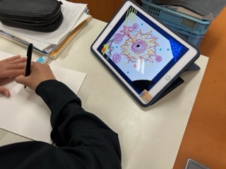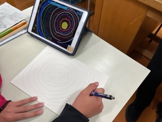 2年生の美術では抽象絵画のアイデアスケッチをしています。